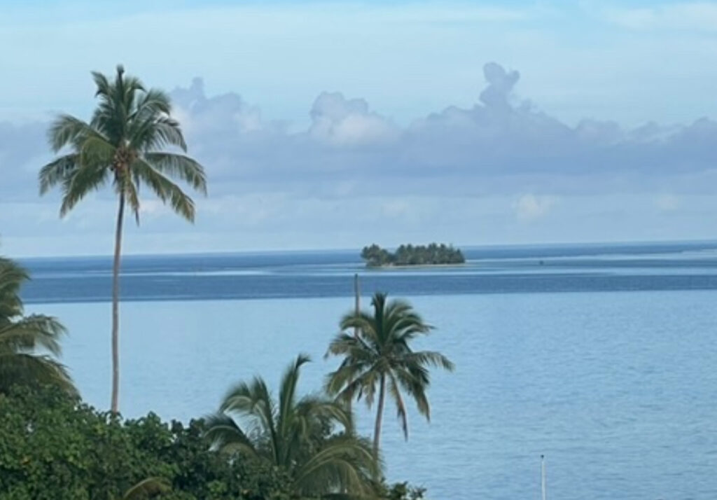 L’île de Huahine représente une femme couchée sur le dos, suivant d’où on la regarde. Sur cette photo, on imagine la tresse à droite puis le visage, puis la poitrine.