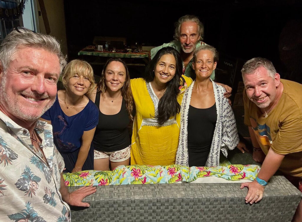 Nous retrouvons les deux mêmes, augmentés de Céline et Belen, à terre cette fois-ci, chez Arnauld et Shalini, pour passer ensemble la soirée du Nouvel-An.