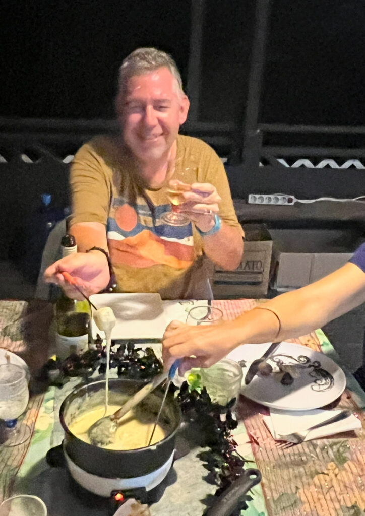 En Suisse, il est assez logique de manger la fondue en hiver. Mais ici, par 30 degrés à l’ombre, cela peut se discuter, je l’avoue humblement !