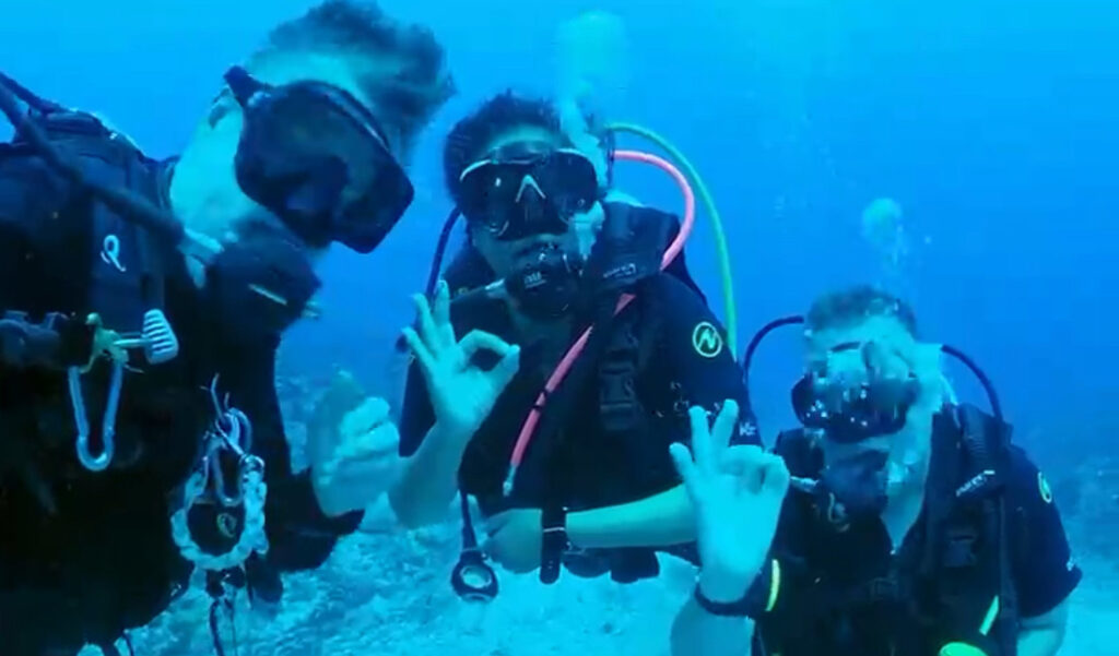 C’est aussi un langage par les mains, comme ce célèbre geste qui dit « Tout va bien » et que l’on fait des dizaines de fois par plongée. C’est une communauté mondiale, aussi, qui a ses codes et se reconnaît, ici ou ailleurs.