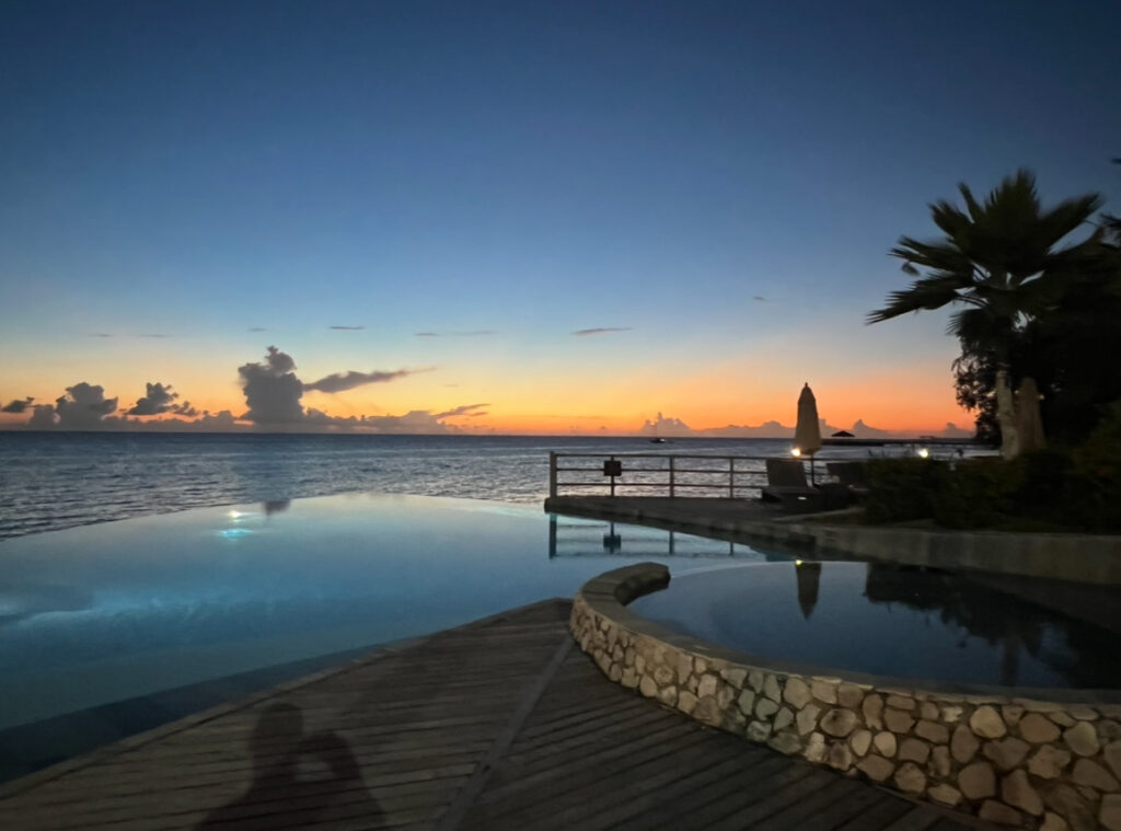La piscine, certes majestueuse, fait un peu doublon avec le lagon : pourquoi aller se serrer dans un petit bassin alors que juste à côté se trouve une piscine de plusieurs kilomètres ?