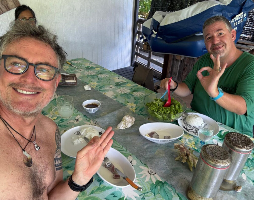 Il m’aura fait découvrir plusieurs saveurs de la mer, avec une mention particulière pour le Fāfaru. Il s’agit de filets de thon mis à macérer dans une préparation d’eau de mer et de têtes de crevettes. On attend 2 jours pour que la préparation fermente bien. Les filets sont dégustés en état de décomposition plus ou moins avancé, dans un lait de coco avec un peu d’ail par exemple.